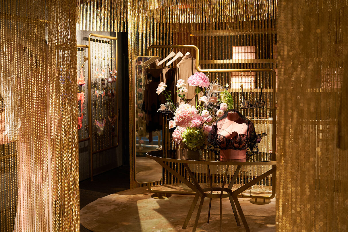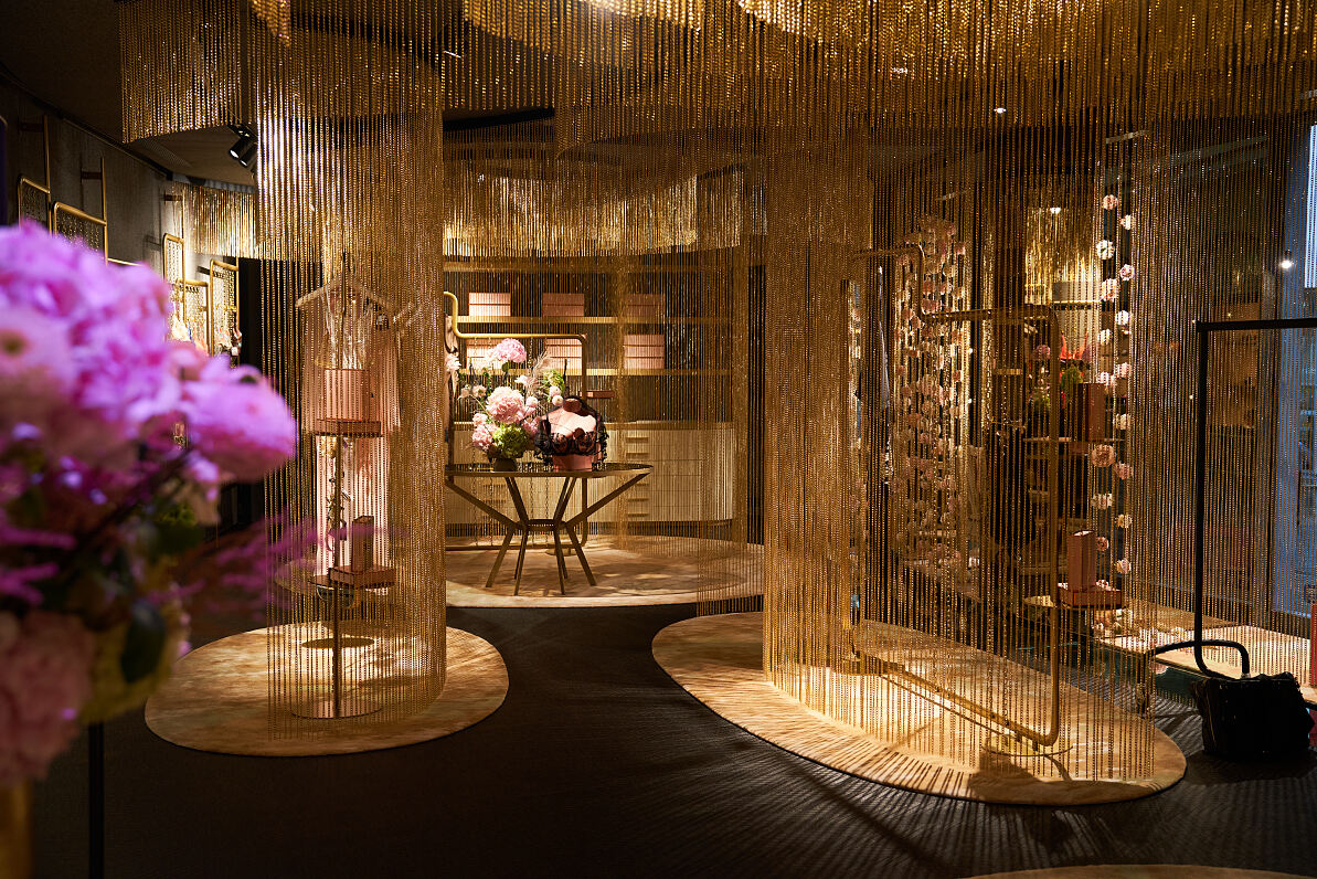 Der Standort des Flagship in der Naglergasse ist kein Zufall, sondern erfolgte bewusst, denn das geschichtsträchtige Gebäude war einst Wohnort des Dramatikers Ferdinand Raimund – ein Ort mit Charakter, Geschichte und Symbolkraft. Auch Wien selbst ist kein Zufall: Als kulturelle Metropole im Herzen Europas verbindet die Stadt historische Tiefe mit internationaler Strahlkraft und ist damit der ideale Ausgangspunkt, um die Marke von hier aus in die Welt zu tragen. Der Store übersetzt diese Verbindung von Geschichte und Moderne in ein sinnliches Raumkonzept - mit goldenen Ketten, die den Raum gliedern, dunkle Flächen, Spiegel und gezielte Lichtinszenierungen schaffen eine Atmosphäre zwischen Boudoir und Bühne.