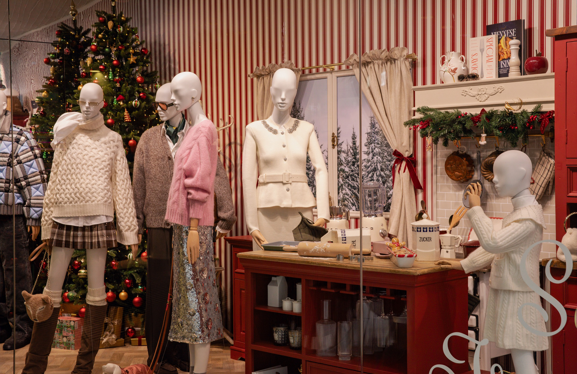 Dabei werden festliche Outfit-Inspirationen neben inspirierenden Geschenkideen auf charmante Art und Weise inszeniert. Elegante Rottöne, hübsche Samtmaschen und rote Beeren schmücken Schaufenster sowie das gesamte Kaufhaus. Gemeinsam mit einem süßlichen Cookie-Duft verbreiten die Dekorationen eine stimmungsvolle Atmosphäre, die die Vorfreude auf die Festtage weckt.