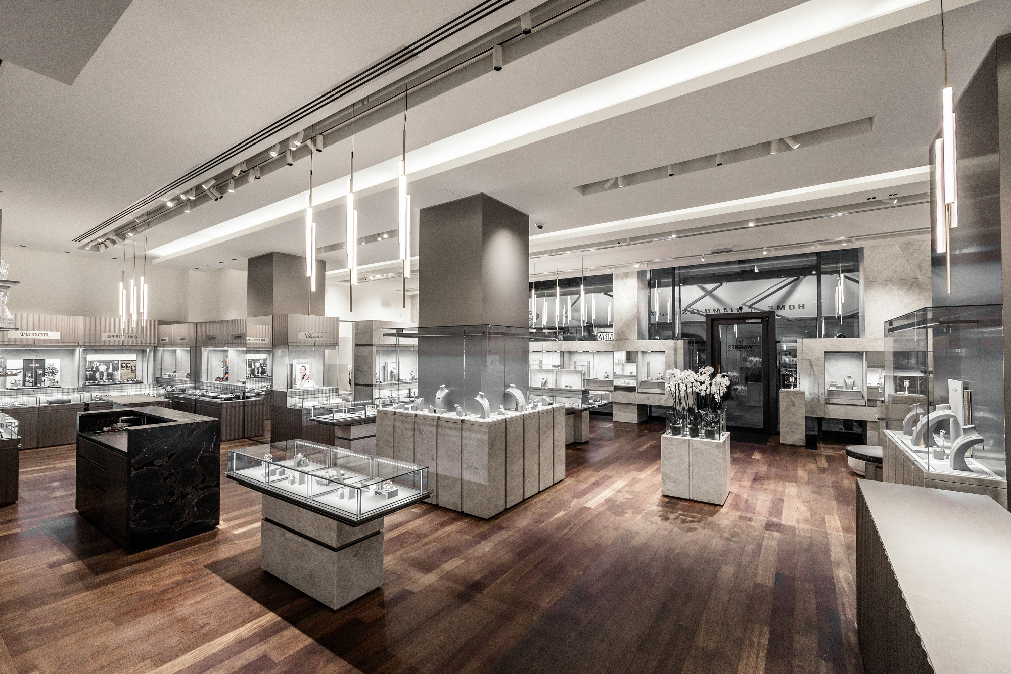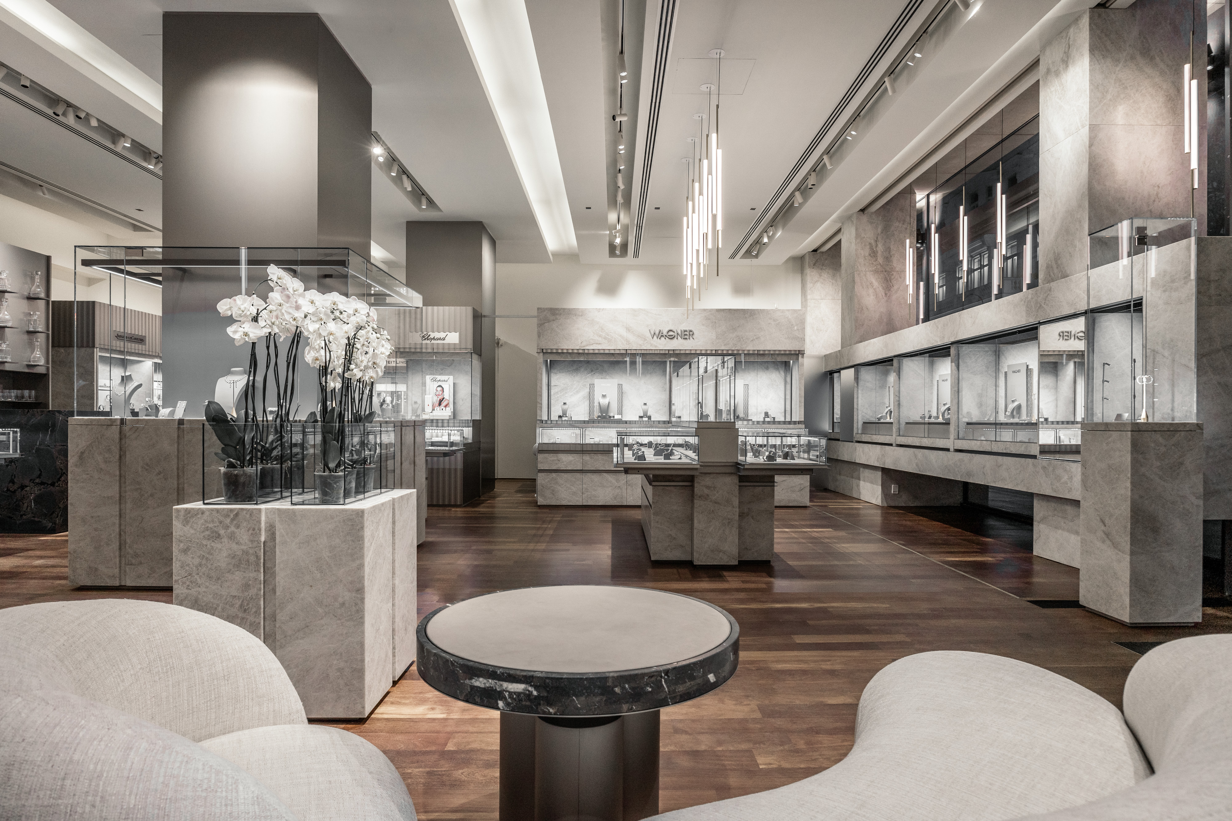 Ein zeitloses Design, ausgewählte Edelsteine und feinste Juweliersarbeit, deren Basis ein tief verwurzelten Wissen über die Goldschmiedekunst ist, stehen seit jeher im Mittelpunkt des Wiener Familienunternehmens Wagner. Denn bereits seit über 100 Jahren werden im hauseigenen Goldschmiede-Atelier Schmuckstücke entworfen, die durch traditionelles Handwerk und modernes Equipment eine immerwährende, zeitlose Einheit bilden. Genauso wie das - nach einer umfassenden Neugestaltung - WAGNER Stammhaus in der Wiener Kärntner Straße: Ein Ort, an dem Tradition und Moderne auf eindrucksvolle Weise verschmelzen. Die großzügige Architektur und das elegante Interieur werden durch edle Materialien, fein gearbeitete Metalloberflächen und Natursteinen mit klaren Linien und stilvollen Akzenten verbunden. Das Ergebnis ist ein Ambiente, das zeitlose Noblesse ausstrahlt und das die außergewöhnlichen Diamanten, Perlen, Rubine, Saphire und Smaragde, die durch meisterhafte Handwerkskunst zu Ringen, Ohr- und Armschmuck, Ketten und Colliers verarbeitet werden, eindrucksvoll zur Geltung bringt.